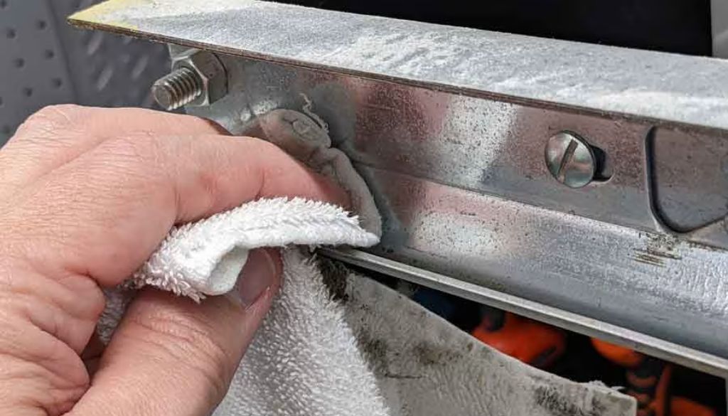 Clean the tracks. Wipe the inside of both tracks with a damp cloth to remove dust and debris. Check for any dents or bends.